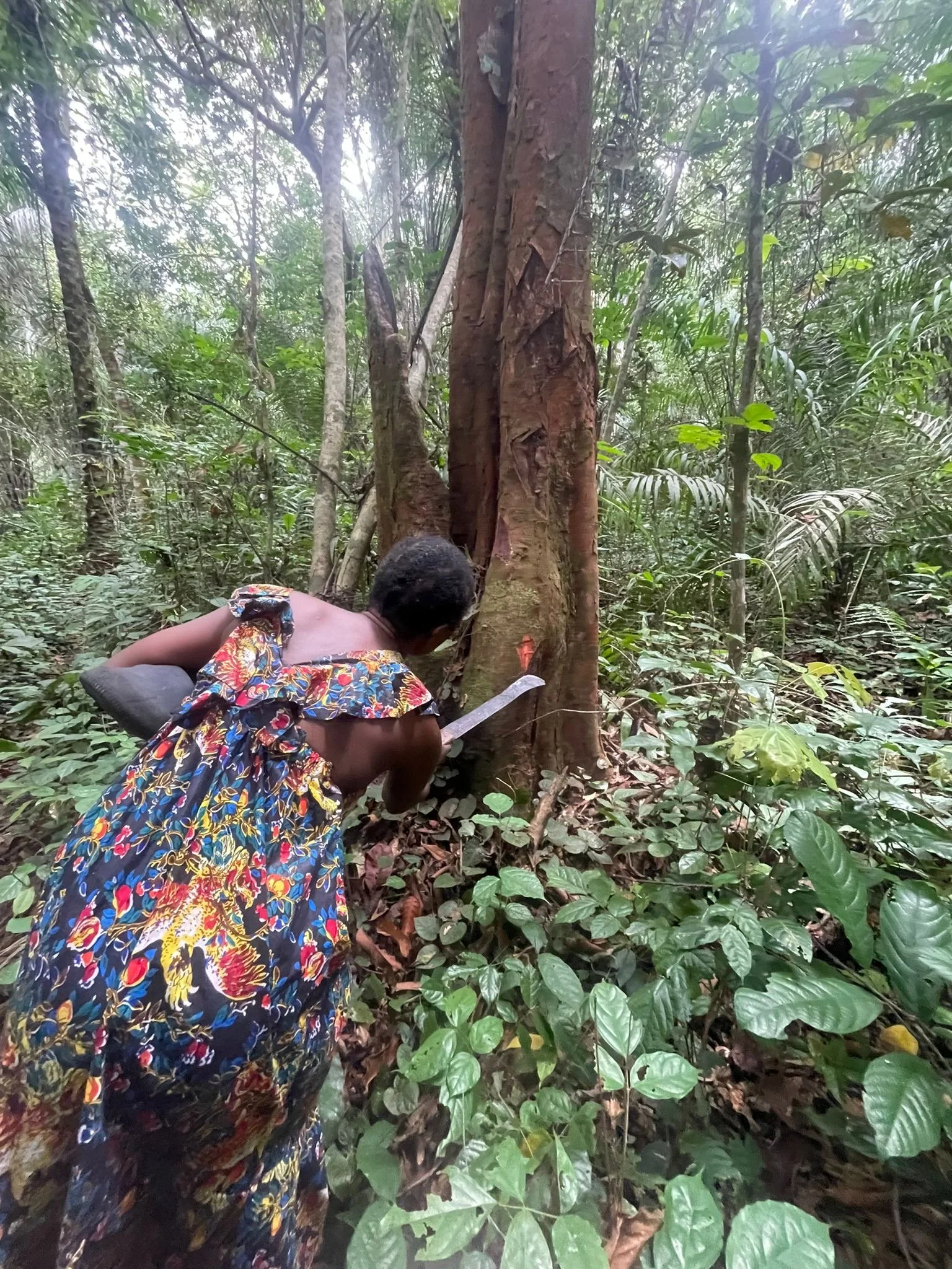 Mama Toto envisions creating direct access to her plantation to ease the transport of produce. Additionally, she plans to plant sacred trees known as Iboga which holds deep spiritual significance in her community. This tree has gained popularity in the West due to its root’s psychedelic properties, which have shown remarkable potential in healing addiction. The Western approach is to isolate and patent the chemical compound ibogaine, believed to be responsible for these effects. However, this has led to extractive exploitation of the Iboga tree, as pharmaceutical companies race to develop it into a marketable "miracle drug."